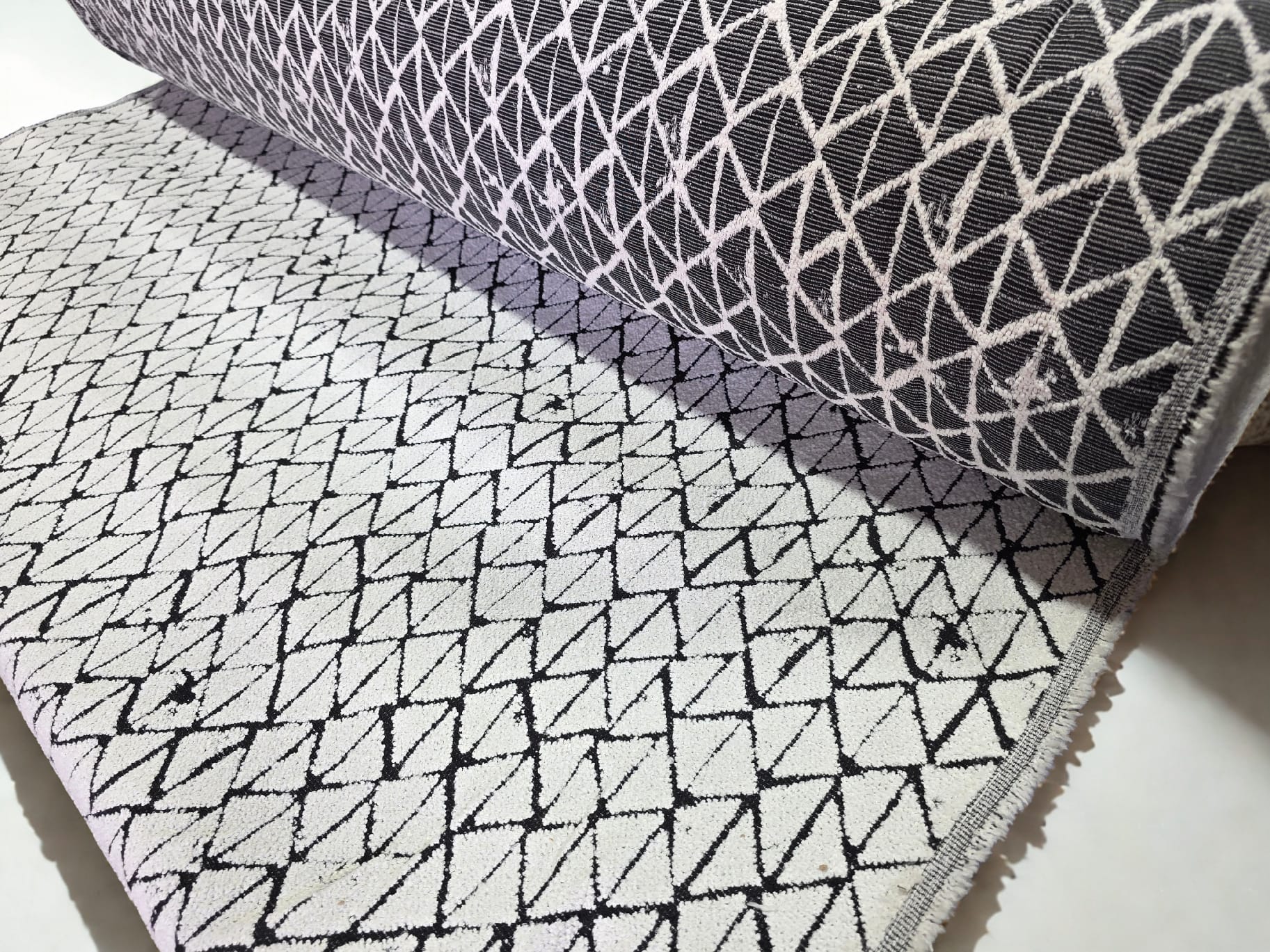 בד ייחודי ומרהיב, המשלב דוגמות גאומטריות עדינות עם טקסטורה חלקה ואלגנטית. הבד מבוסס על טקסטורת בוקלה המוסיפה נפח ומגע רך, ובשילוב טכניקת ג'קארד המעניקה מימד נוסף של עומק ואלגנטיות. מושלם לריפוד או לאביזרי עיצוב מרשימים.